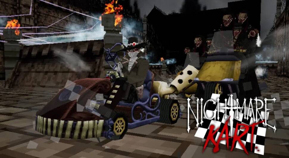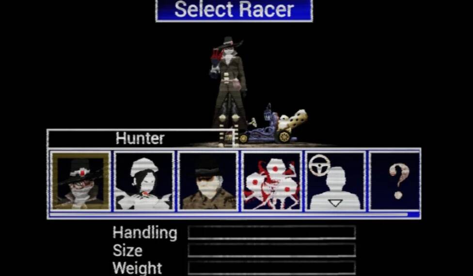 这款免费的游戏原本名叫《血源卡丁车》,游戏里的素材明显是在指涉《血源诅咒》,游戏内的画面被制作成了PS1游戏的像素风格。