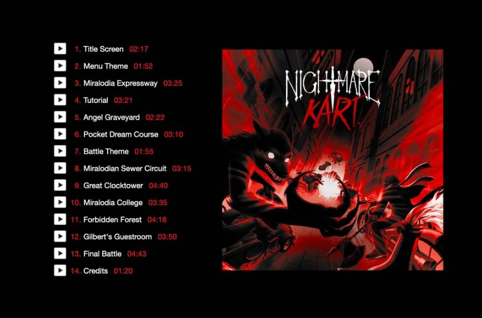 而本文中提到的这款《噩梦卡丁车》,明显是相关同人作品中完成度最高的,它除了拥有完善的地图角色和关卡,还有专门的PS1风格游戏音乐。
