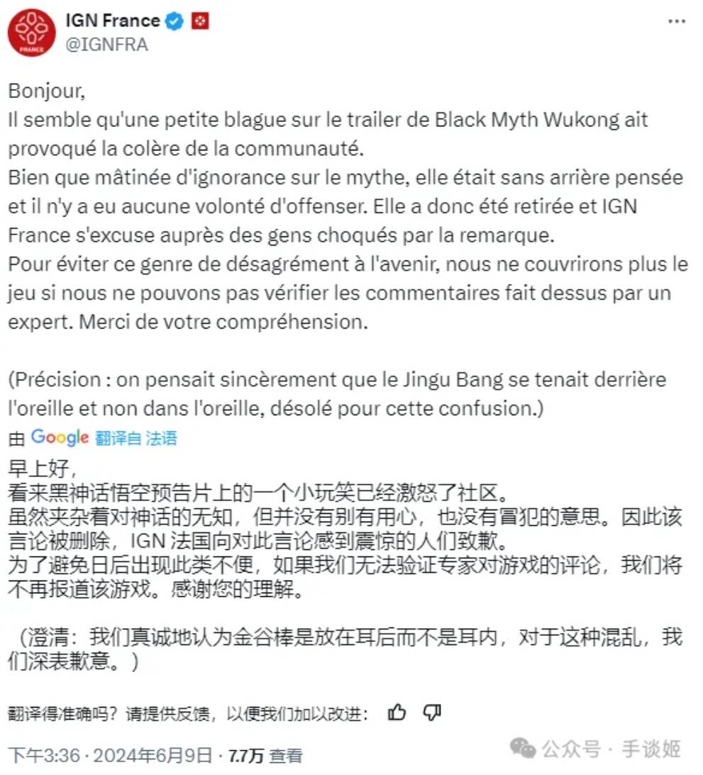 其实,如果一个外国人没看过《西游记》,第一次发现孙悟空把武器收到耳朵里可能确实会觉得奇怪,流汗黄豆也可以用不同国家对表情有不同用法,在法国该表情不一定有国内这么强的攻击性来解释,但手谈姬个人认为,IGN法国并不是一个普通的个人,而是一家有一定名气的游戏媒体,那么在一个玩笑开出之前,若你对你的玩笑对象一无所知,那秉持着严谨性等各个方面的需要,去网上查询了解不懂的东西,再去组织语言,难道不是更妥当吗?