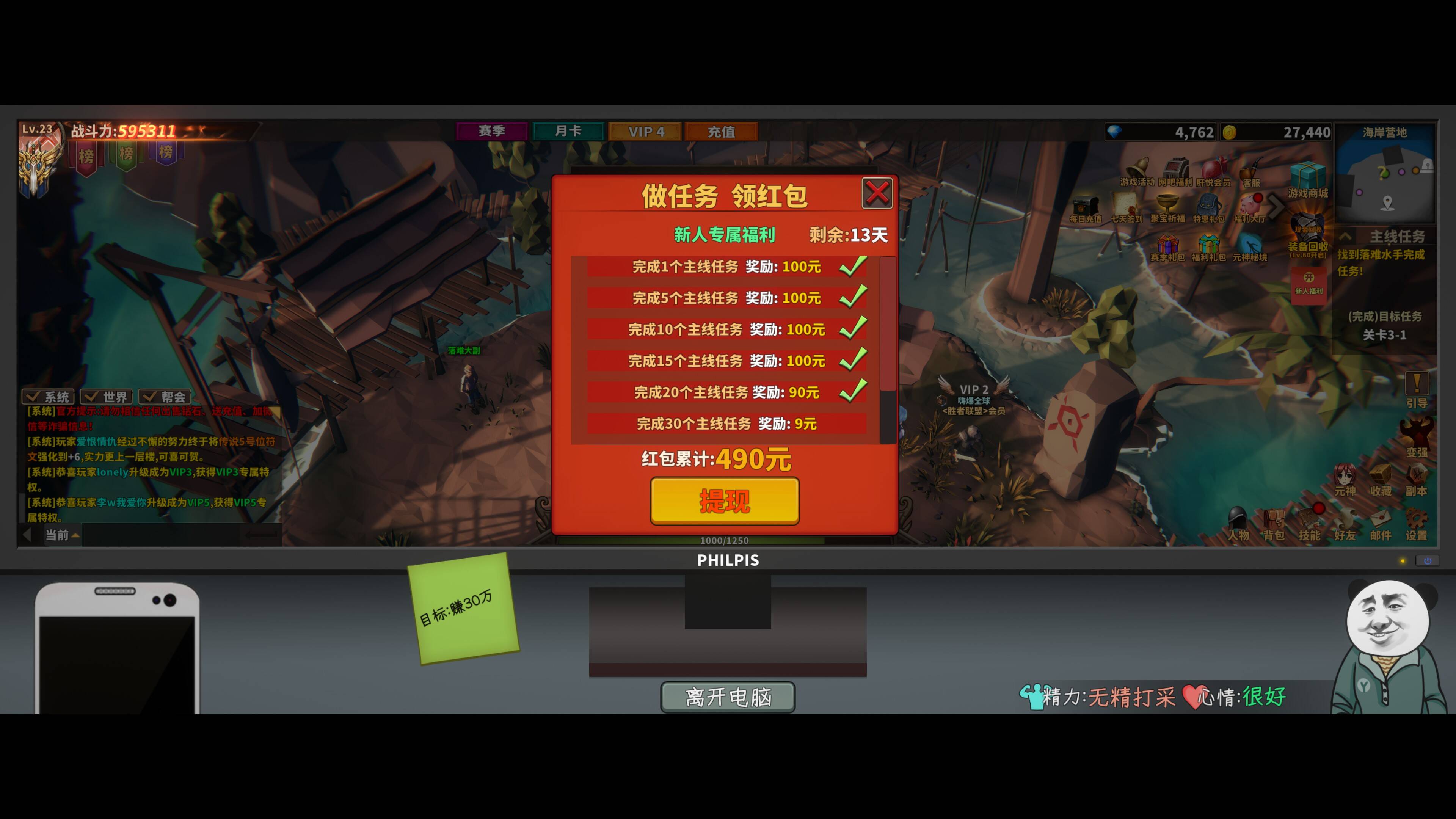 当然满足的背后一切都是要付出代价的。你需要在工作和游戏中找到平衡,是兢兢业业的做好螺丝的质检工作还是企图通过网游来获利。这都取决于你!你可以在家、公司、街道、网吧等不同场景中切换,体验不同的互动内容。最初想白领红包的你可能反过来给游戏充了很多钱。那这一切真的值得吗!