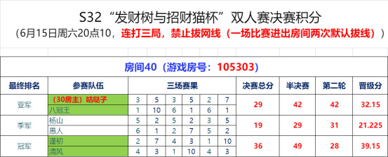 经过为期二天的激烈对抗,由宇宙元老会主办的招财猫与发财树杯(双人赛)于6月15日成功落下帷幕,航海家·谨初和天文学家·清风以39.15分夺得冠军,摘下冠军名号!高天尊·咕哒子和八冠王·蔡问天以32.15分获得亚军,杨山和鱼人获得21.225分拿下季军。