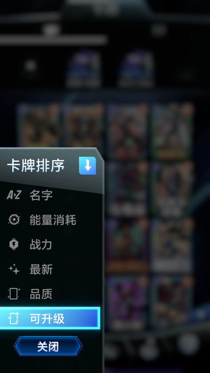“收藏”->“卡牌排序”->“可升级”,个别满足筛选条件的卡牌并没有特效显示出来。