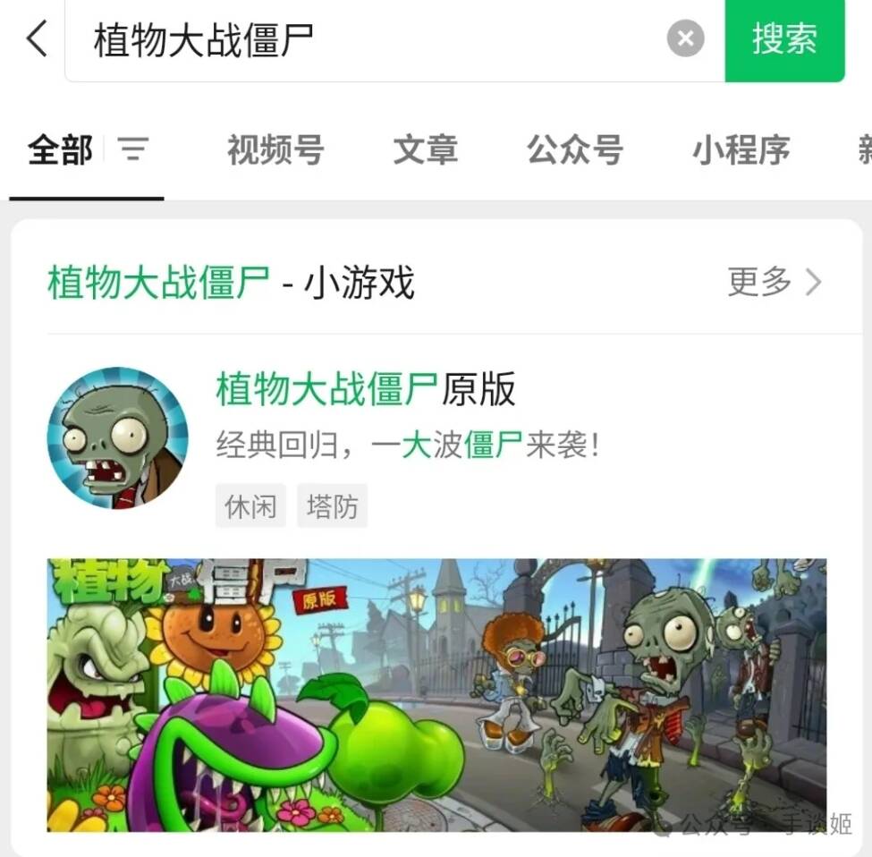 非常简单,姬友们直接打开微信,搜索植物大战僵尸,找到小游戏植物大战僵尸原版。