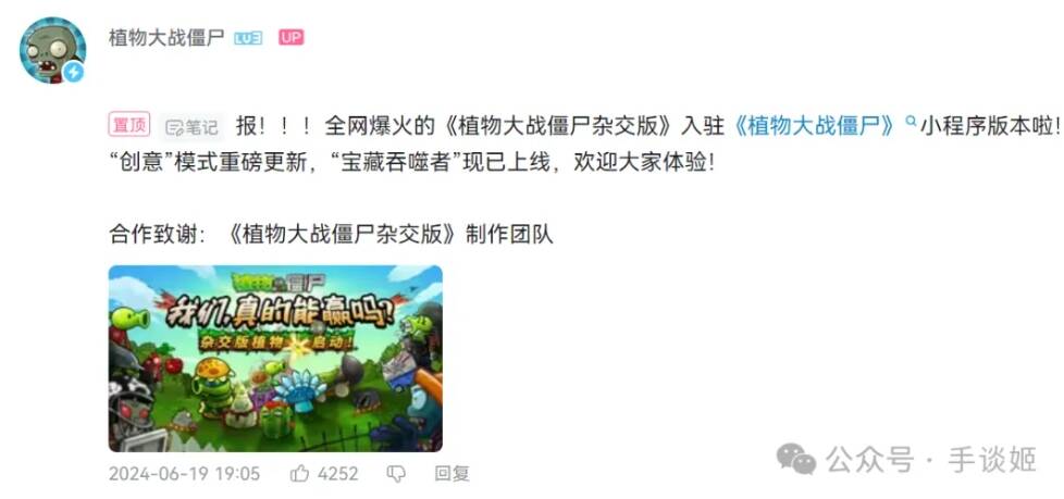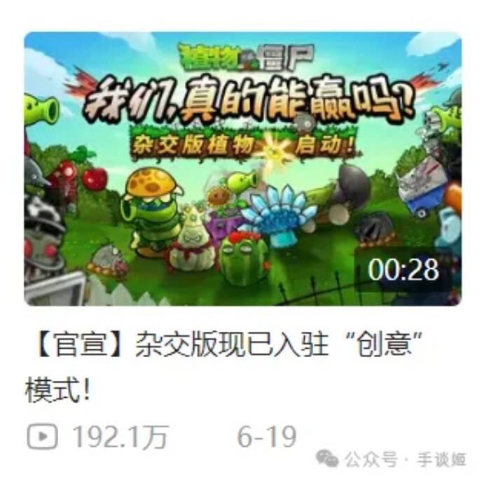 没想到,6月19日,《植物大战讲僵尸》官方B站号突然发现视频宣布,杂交版入驻了原作的“创意”模式。