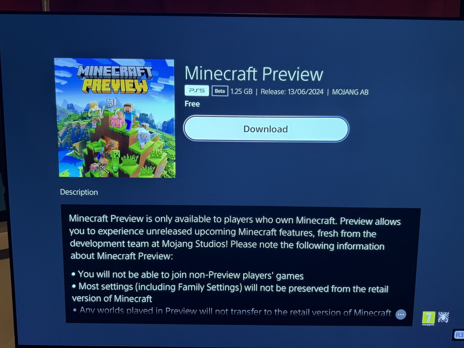 预览版包含最新更新包括棘巧试炼内容,但与其他主机的跨平台游戏已禁用。开发者表示, PS5原生版本《我的世界》运行更高效。在此之前,Minecraft通过向后兼容运行。