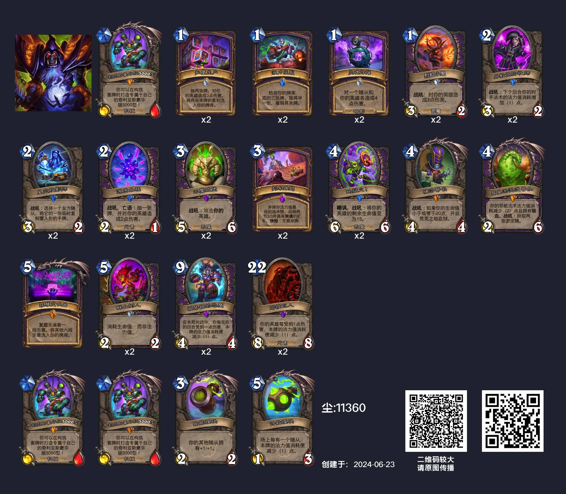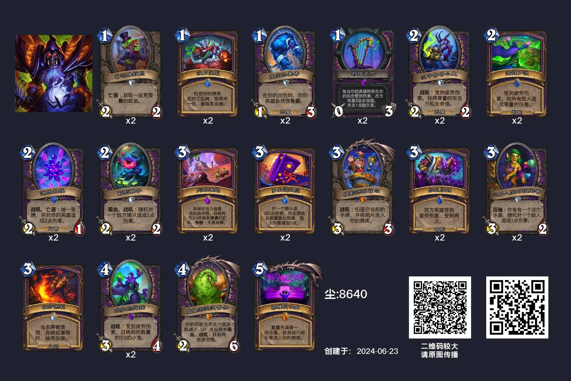 -亵渎*2、吸取灵魂、异教低阶牧师、源质晶簇、音箱践踏者*2、加拉克苏斯大王