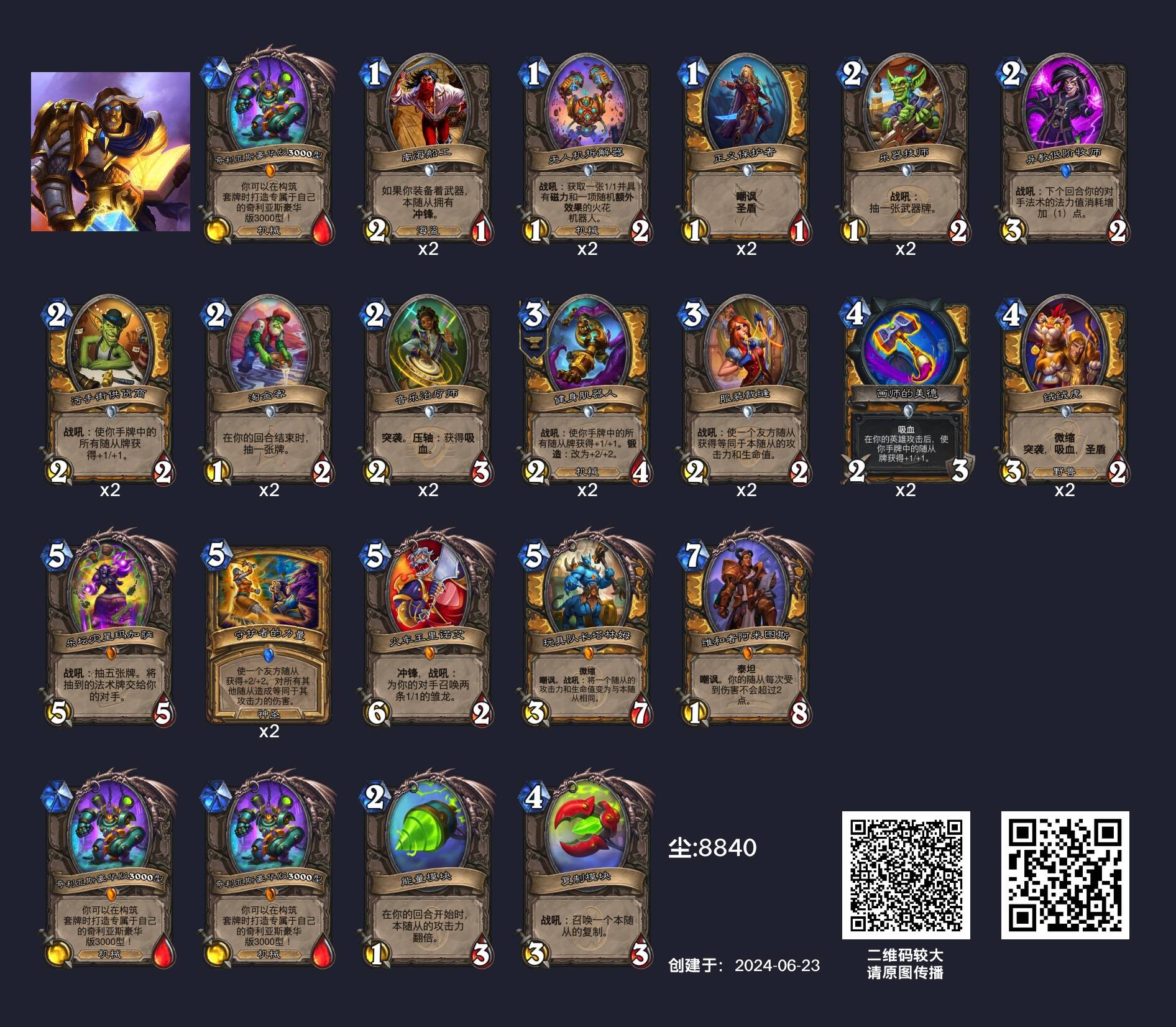 - 我会经常清理我在营地收藏的卡组,所以如果大家对文中的卡组感兴趣并想在营地里模拟摸牌或者是查看费用、种族、关键词分布,请复制卡组代码并依此创建一个新卡组。不要点击“跳转详情”。