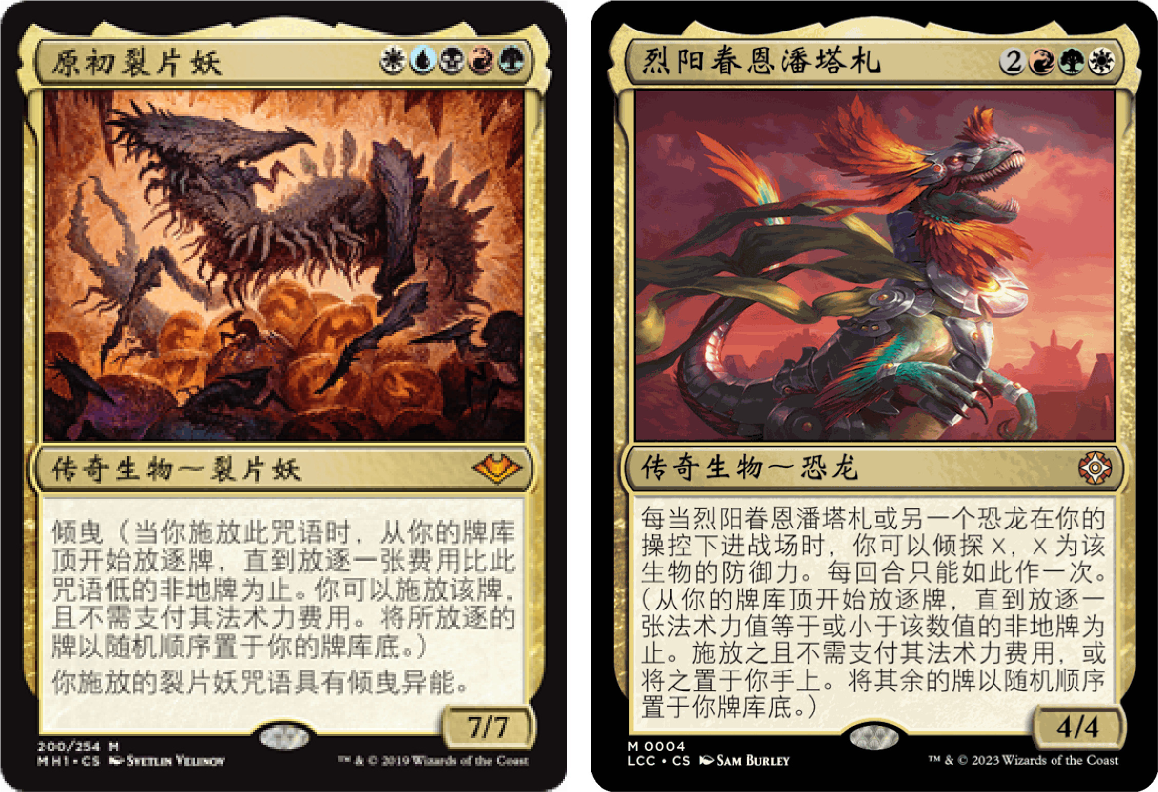 ·裂片妖cascade是cast trigger,而恐龙的discover是ETB,前者有更好的反击抗性(至少能结算一个),在极少情况下对手响应discover削减恐龙防御力也可以使combo失效。后者看似提高了法术力稳定性,却损失其他稳定性,得不偿失。