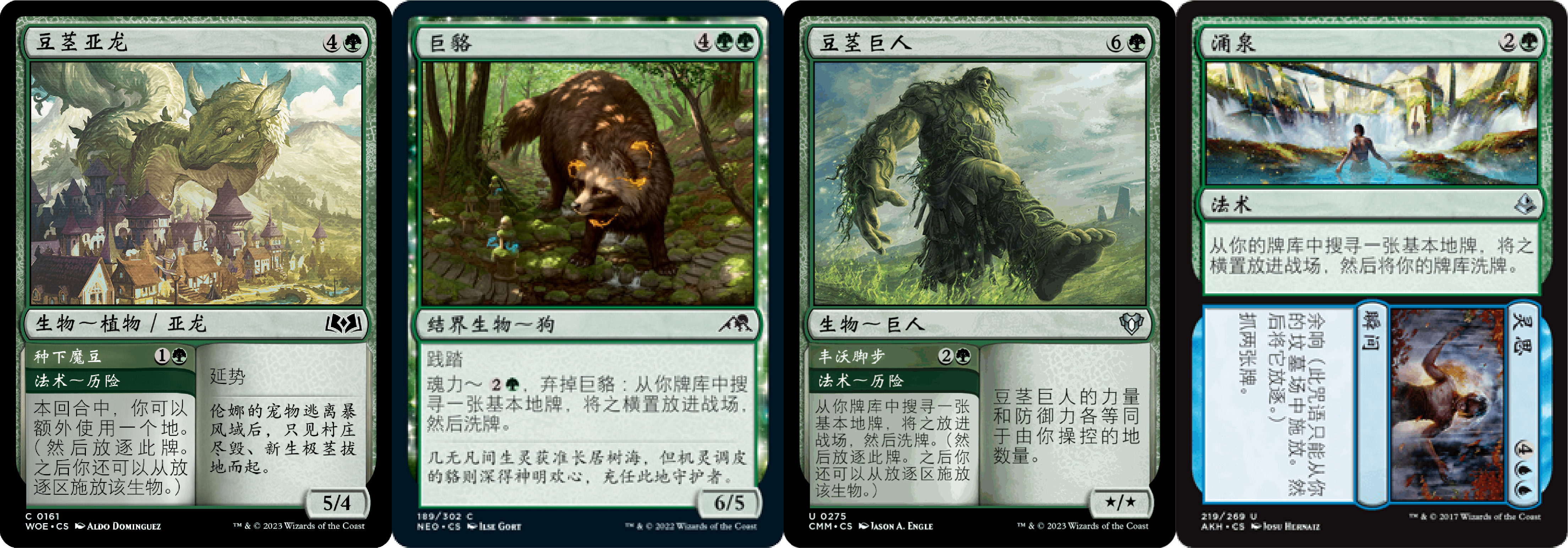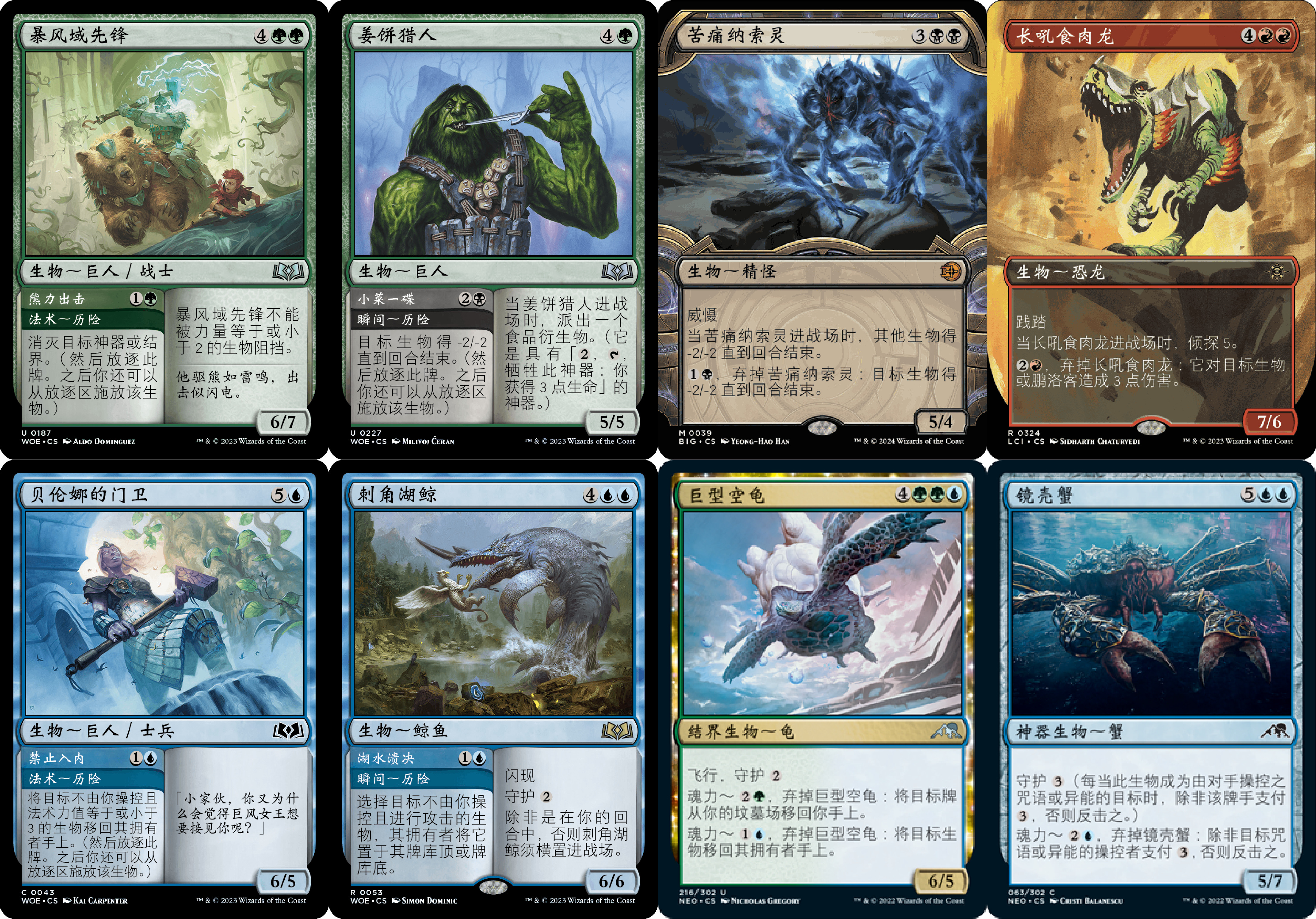 ·大量生物咒语,皆满足Power>4且MV>4,围绕【巨兽漩涡】骨牌链条。