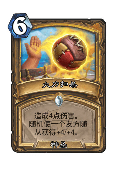 造成4点伤害。随机使一个友方随从获得+4/+4。