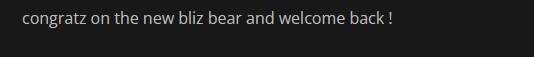 "恭喜拿到新暴雪熊,欢迎回来!"