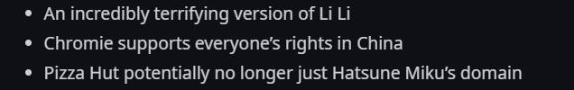 "超可怕恐怖版丽丽,克罗米保障了每个中国玩家的权益,必胜客再也不是只被初音未来统治了。"
