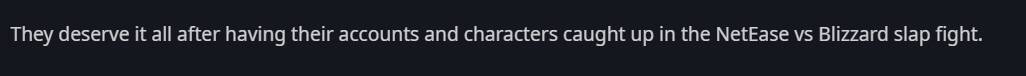 "在经历了网易和暴雪的撕逼战之后,他们值得所有补偿。"