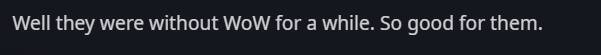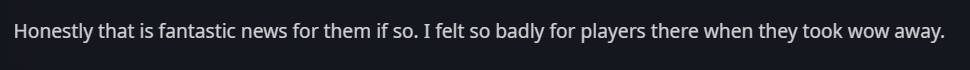 "说实话,如果是真的,那确实是迷人的好消息,当他们被迫离开魔兽世界时,我真的为他们感到难过。"
