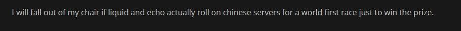 "如果liquid和echo为了拿奖而去中国服务器,我会从椅子上吓得掉下来的。"