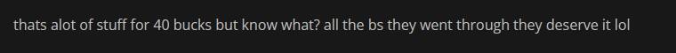 "确实,那么多东西只卖40美元(指怀旧服超级直升)确实过于实惠了,但是你们知道吗。在他们经历了那些事情之后,这是他们应得的。"