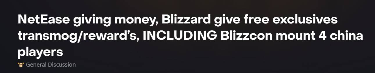 在美服论坛,有人发布了这样一则帖子:网易和暴雪给了中国玩家免费的独家奖励,包括暴雪巨熊,而我们什么都没有。在这篇帖子下,不少美服玩家为中国玩家能重新回到艾泽拉斯而感到高兴。