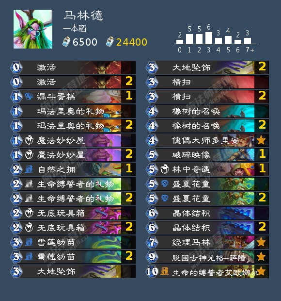 还有几位平时不主打标准模式的主播也带了新东西来。稻哥虽然平时打竞技场,不过这次带的牌里还出现了刚流行开的“马林德”;骚套路第一人夏布去也带了他的无敌树人德。