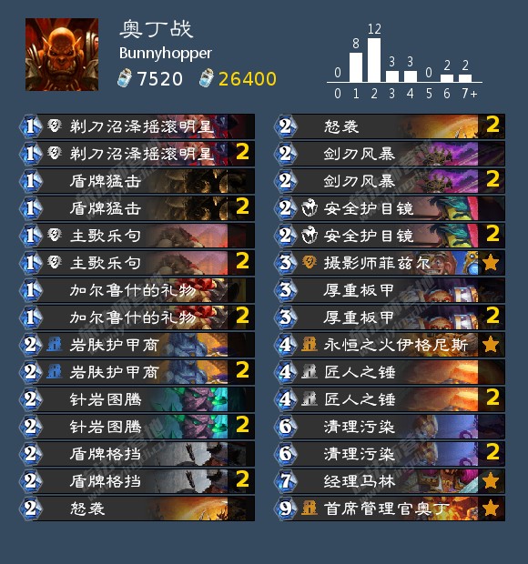 我们为比赛设置了特殊的构筑规则,规定每人必须1)有一套牌带马林,2)有一套牌带巴库/吉恩,3)还有4张社区票选的禁牌分别是奇利亚斯、雷诺、铜须和爆破工头索格伦。其中第二条“必带奇偶”其实是给了参赛选手两种构筑选择:可以组真正的奇偶卡组,但当前标准环境能组出来的不一定够强;也可以把身材更不坏的吉恩当作白板塞进普通主流卡组里,不过这样一来卡组强度也会略有下降。我们有意保留了这个选择空间,结果主播们在这一条上也确实分成了两派——一边有10位选择了让吉恩当吉祥物,另一边有5人带了真正的偶数术,还有一位带了真正的奇数战!到底是哪一派的选择更好,今天A组小组赛里两个卡组都有,让我们拭目以待。