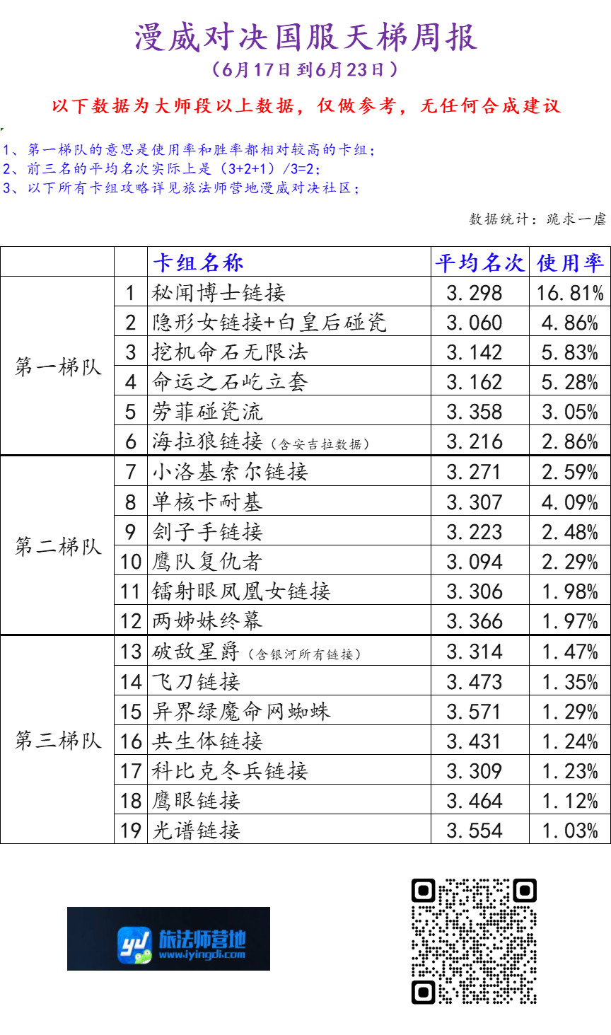 本周报数据仅做参考,本文不做任何卡组推荐、合成: