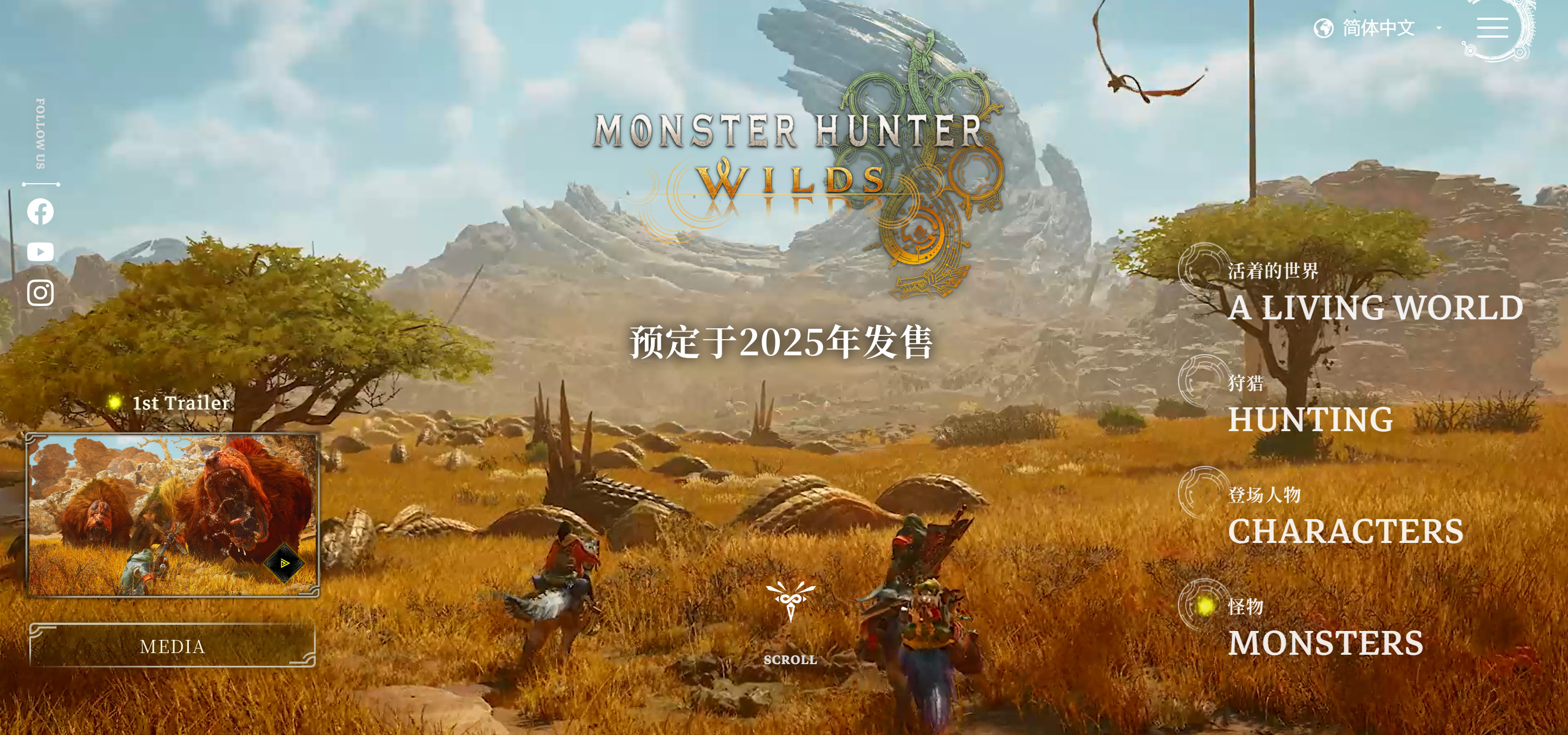 简体中文官网:https://www.monsterhunter.com/wilds/zh-hans/