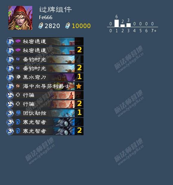 过牌占卡组的三分之一,盗贼职业的低费过牌可以保持边打边过牌,资源完全可以跟得上,不用担心任务做完手上无牌可用的局面,实际体验下来手牌往往越打越多的,对比其他的40卡组,这套牌的过牌速度是非常快的,有通道和芬利可以做到手上的牌打不过对面可以用牌库的牌来打,相当于牌库也是手牌。