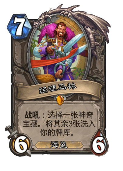 - 3、经理马林:增加对局娱乐性和补资源的卡,有三个宝藏用起来手感还是不错的,奇迹仗是真能打出奇迹一波斩杀的,王冠能发现特效随从强度也够,至少身材肯定不亏,酒杯希望你能一手的暗影步或者冲锋。挖宝拿手里给过山车当养料吧,没用的东西。