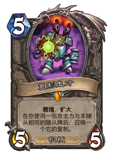 - 1、复制鬼才:假如某一天水索尼娅真的被削弱了,这张牌可以作为索尼娅的下位替补,任务贼使用这张牌有个优点在于本体+微缩+扩大都是5-5都能触发特效,提前一回合打出本体+有多余费用下点1杂毛铺场或者1费突袭解场,手拿1费微缩版下回合的操作空间巨大。