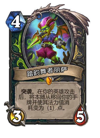 - 2、踏韵舞者丽萨:潜力卡,理想情况下,提前挂刀(2耐久),打出去再收回来变成1费,下回合拍下索尼娅或者复制鬼才,手里如果能掏出3费来便能一回合打出31点伤害。