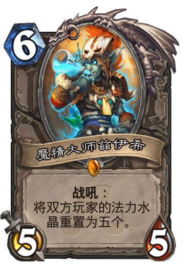 - 4、魔精大师兹伊希:锁晶在任务贼手里就是控制卡组的爹,打任务贼后期就靠它了,对手永远到不了9费,打出锁晶,大法师,奥丁,沙德,神雷诺,导演,术士dK,骑士dk全部废掉,超过8费以后才开始启动的卡组基本宣判死亡,自己受影响其实是非常小的,卡组费用普遍偏低,唯一高费牌只有一张英雄牌,如果是在变身以后再打出锁晶,能做到伪10费打8费。锁晶是必然要多次回手利用的,锁一次能拖住对面2-3回合,而终结对方只需一回合,留给自己凑齐斩杀的回合是非常充足的,而且锁住期间还能进行持续铺场压制+过牌补资源,大多数的情况下是对面低费解牌解不干净,高费解牌打不出,即使打得出来,解完以后也没有多余费用操作,等待下回合被冲锋斩杀。环境慢直接带,环境快放牛牛里。