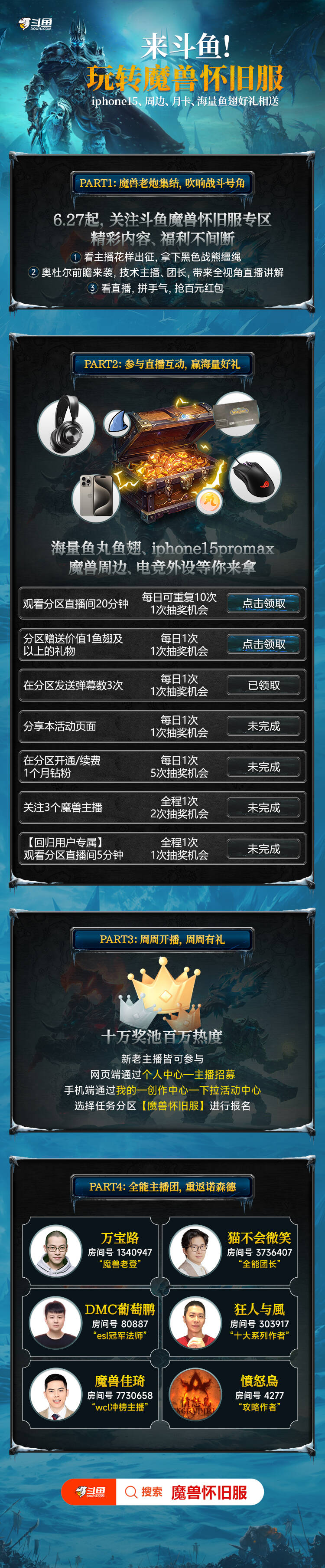 这足以看出我们魔兽世界玩家压抑了许久的激情~为此,斗鱼与营地即将联动开启专区活动,上斗鱼看直播,玩转魔兽怀旧服!
