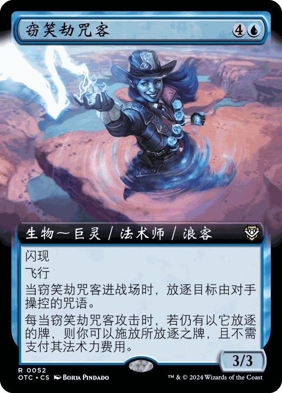 A:劫咒客并未创造被放逐之牌的复制品——你在它攻击时施放的是这张牌本身。一旦你施放了它,它就会离开放逐区进入堆叠,且这张牌之后的结算过程与其他咒语一样。如果你再次用劫咒客攻击,因为没有牌被它放逐,你无法再次施放被放逐之牌。