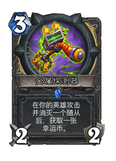 在你的英雄攻击并消灭一个随从后,获取一张幸运币。