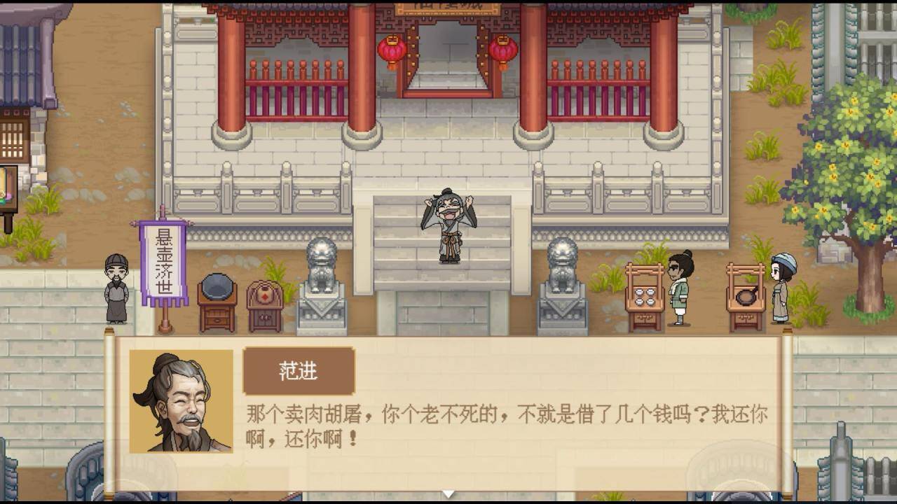 A:《儒林外史》原著本意是为了讽刺科举和人性,但受到时代限制,缺少一定的人文关怀。每篇主角都是作者用来讽刺的工具,用完就扔了。我做游戏的主题是关注在科举制度下受压迫的人,去描写范进在不同功名阶段的心理状态,这也是我们当代作品比较侧重的一点。