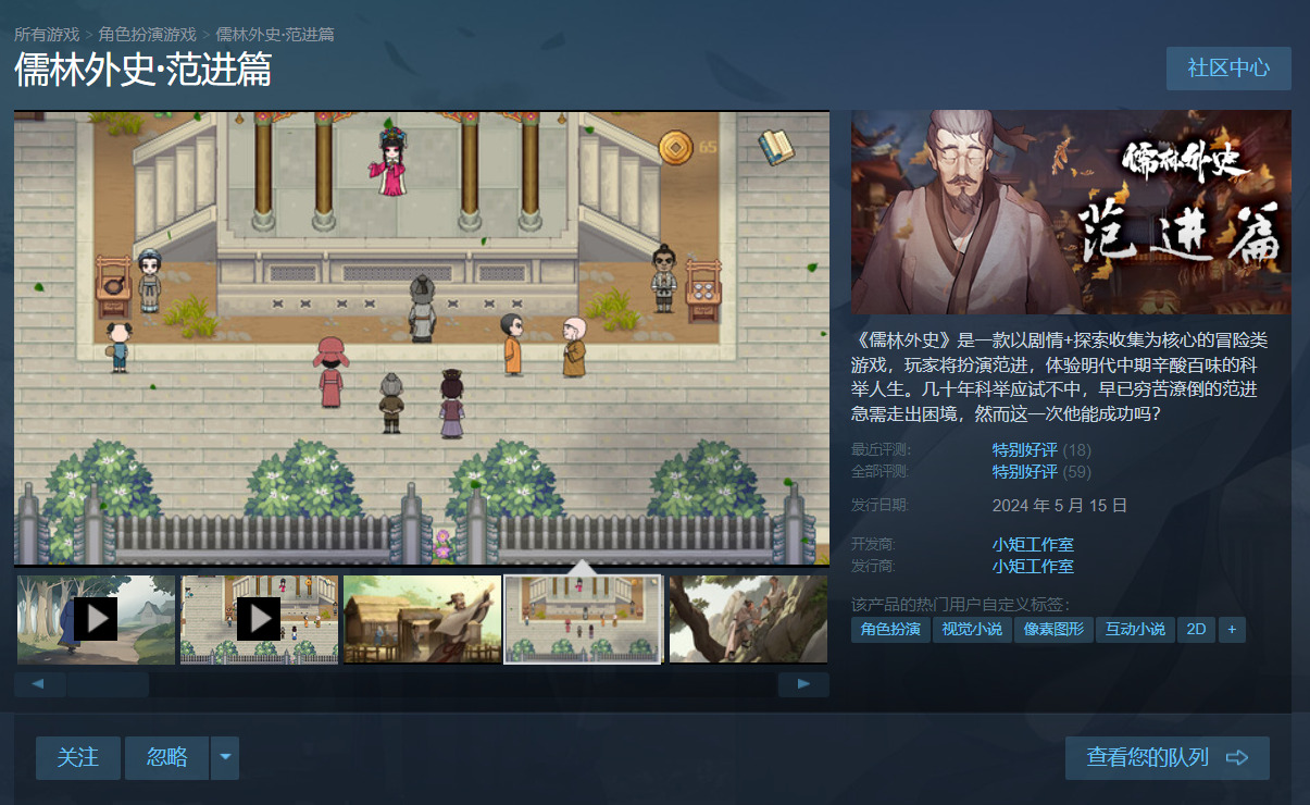 《儒林外史·范进篇》过于正经,这让它更偏向于严肃作品,当然这并不妨碍我觉得它好。如果我觉得一个游戏好,我会尽我所能将它推荐出去。至少我现在还年轻,有些精力,我想做一些我觉得有意义的事情,并将这些事情以我的视角记录下来,于是有了这篇简单的文字访谈。仅此而已,感谢阅读。