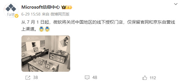 日前,博主“Microsoft信仰中心”透露,7月1日起,微软将关闭中国地区的线下授权门店,仅保留官网和京东自营线上渠道。