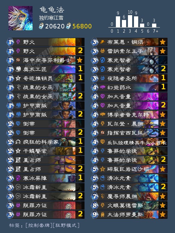 打的中途改了几张。首先是多系施法者,本来手牌就很难清,畸变环境更不缺牌。两个伴唱机也去了,前期基本没用,还容易被原偷过去。一个脏鼠和火热促销通常起不到效果,去了。带了干鳞警官,可以给一张套牌外法术,比较灵活。带了两张护甲商贩和一张奥术工匠,很多时候脱罪血量低了没用,它们用来抬血量很好用。虽然工匠会被原劈抽到,但是也不亏。带了一张蛇油,和火热促销差不多定位,但是比较好清手牌。