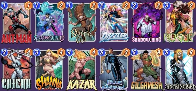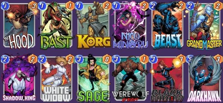 毫无疑问的本周天梯与征服模式双霸主,所有的思路与“snap”时机在绝对的费用压制和强大的信息差面前根本分文不值,让各位终极逆转探员领略到了一番炉石“古夫大帝”的美。【阿里瑟姆】与【洛基】最极致的配合在于能重新实现3回合“开洛”,为这位本就强大的故事之神更加坐稳了减费机制天王的宝座。就算【洛基】不上手,【科尔森探员】或【尼克·弗瑞】也能快速补充优质手牌资源,实现费用上的最大利用化。笔者敢在此断言,【阿里洛基】在未来很长一段时间里都会是【洛基】卡组的最佳选择,至少在新鲜感的提供上必定无人能敌(只要两者没被削弱)。