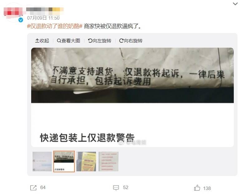 近日,《追踪仅退款的人》一文从商家视角反映仅退款模式的困境引发热议。随后,话题“仅退款动了谁的奶酪”登上微博热搜。