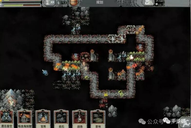 比如,你放一个村庄卡牌在道路上,下一次人物路过村庄地块,就能接到一个任务;种下田地卡牌,你路过后能回血;放置一个吸血鬼宅邸,地块会逐渐生成吸血鬼,待主角路过时触发战斗。