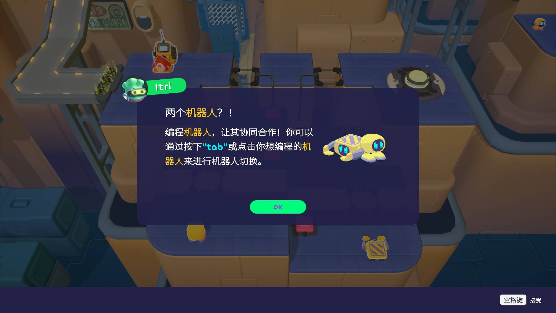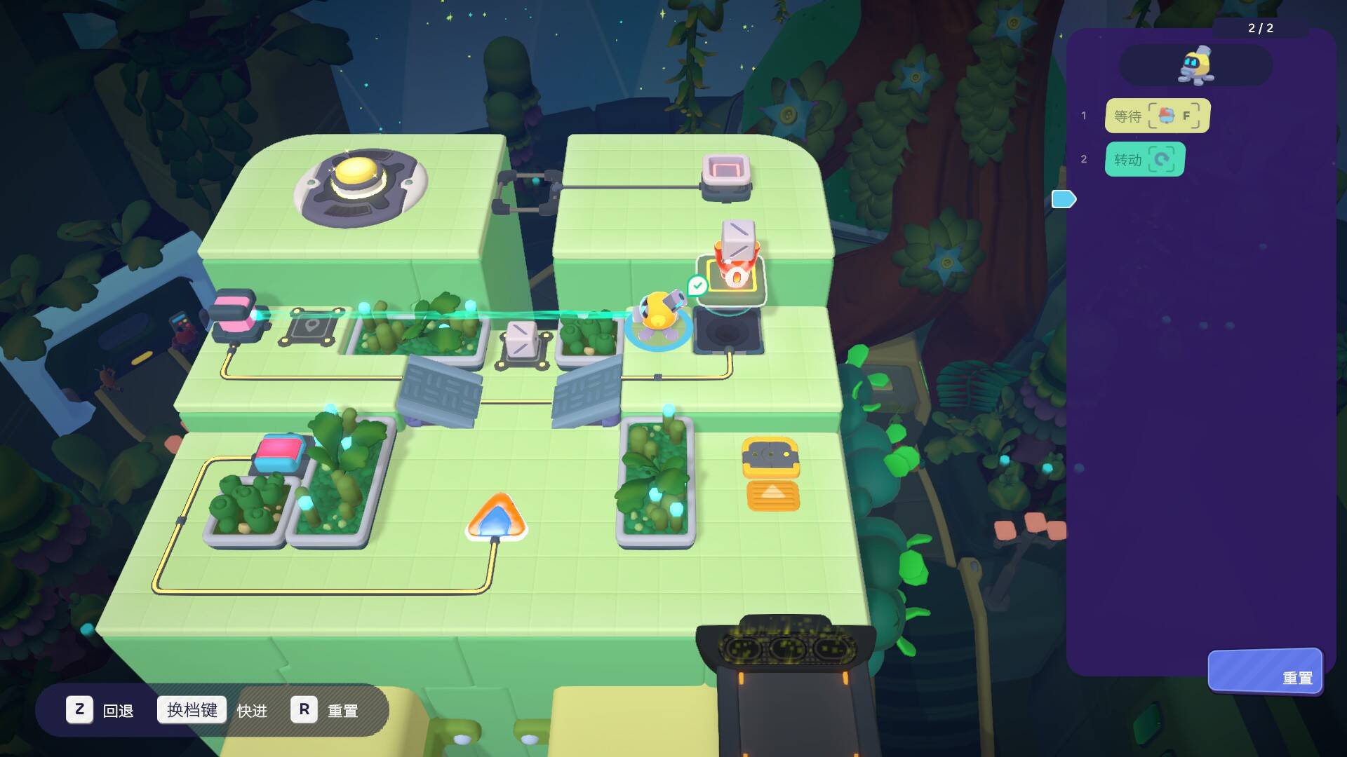 接下来便是难度升级的时候了,下个区域关卡中会同时出现两个机器人,这次玩家要为其同时进行编程,再加上主角的行动,场面上会出现三个角色配合解谜的壮观。