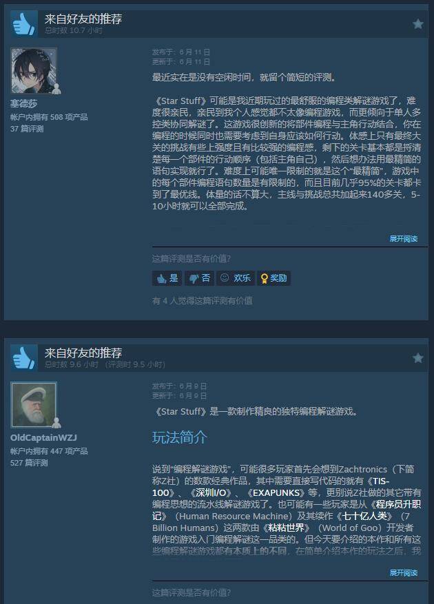 整体来说,《Star Stuff》的表现非常出色,用精美的画面、递进的难度、简单易上手的操作,将原本枯燥的编程内容完美的融入到了游戏里,真正做到了寓教于乐,强烈推荐喜欢解谜游戏的玩家入手。