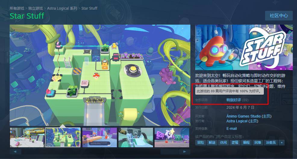 这部《Star Stuff》可谓冷门佳作的典范,没有铺天盖地的宣发,不靠刷好评来营销,发售20天来Steam平台仅有89个评价,但却保持着100%的好评率。