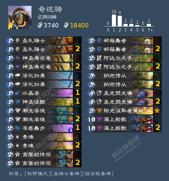卡牌暂时装不上只能放图片了。核心思路是围绕着莱妮莎和纳迦侍从双倍过牌再通过硬币双倍回费一回合铺满场,然后打出双倍的责难动感舞步直接拿下。前几回合拿点硬币,然后打出熊猫人给莱妮莎减两费,小娜迦能回手法术再打。感觉强度很高感觉应该还可以上合唱团和重拳先生开个40卡组