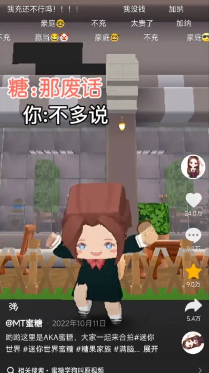 姬记得最深刻的是以前抖音火过一段时间“XX你冲不冲”的梗,有个主播发了一条《迷你世界》版本的,遭到网友各种谩骂。