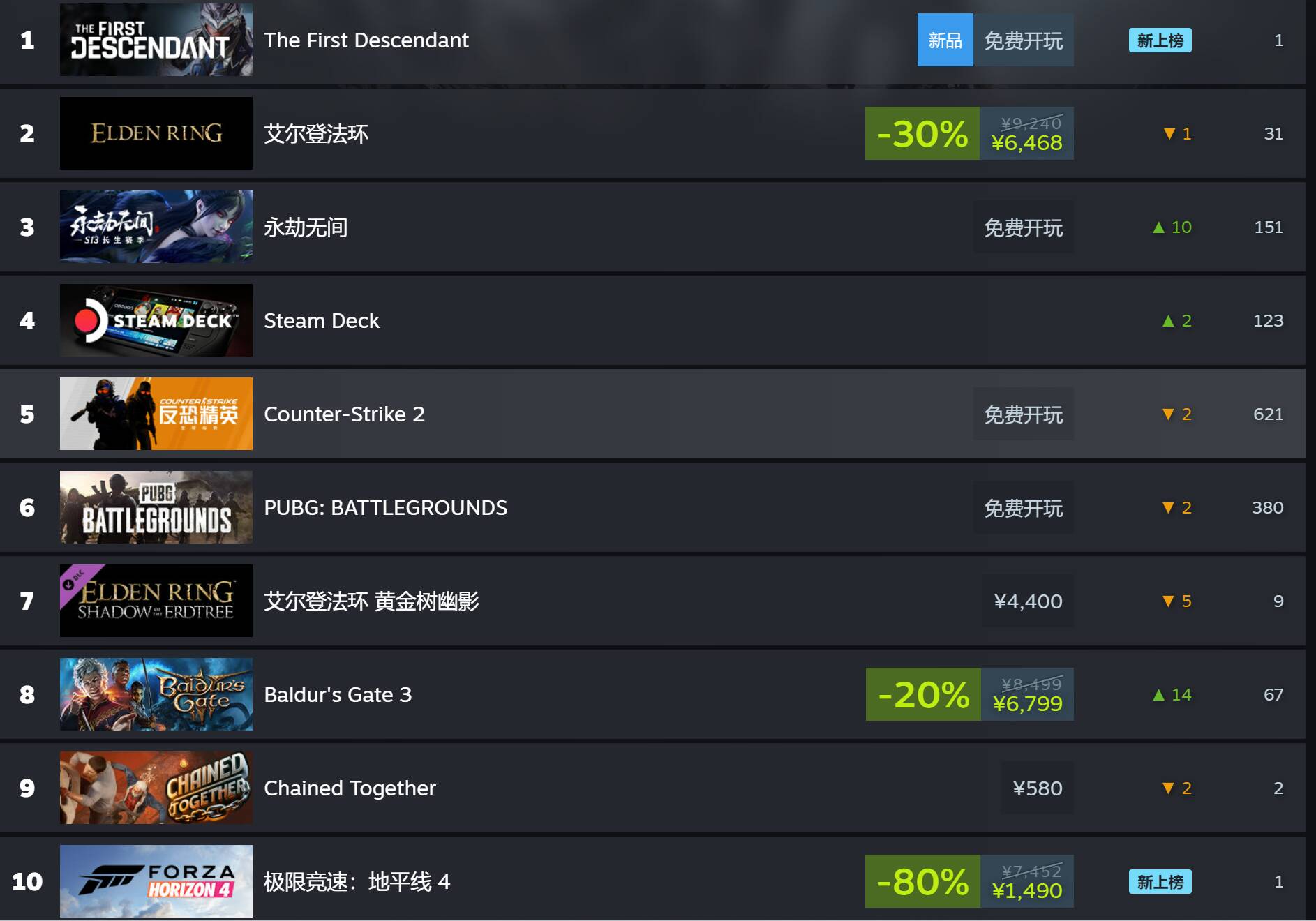 据Steam平台数据显示,《第一后裔》自昨日发售以来表现抢眼,超越《艾尔登法环》成功登陆Steam热游销量榜(按收入排名),《永劫无间》第三。