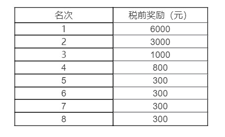 本赛事总奖金12000元,以及参赛即得的营地专属徽章,具体分配方式如下: