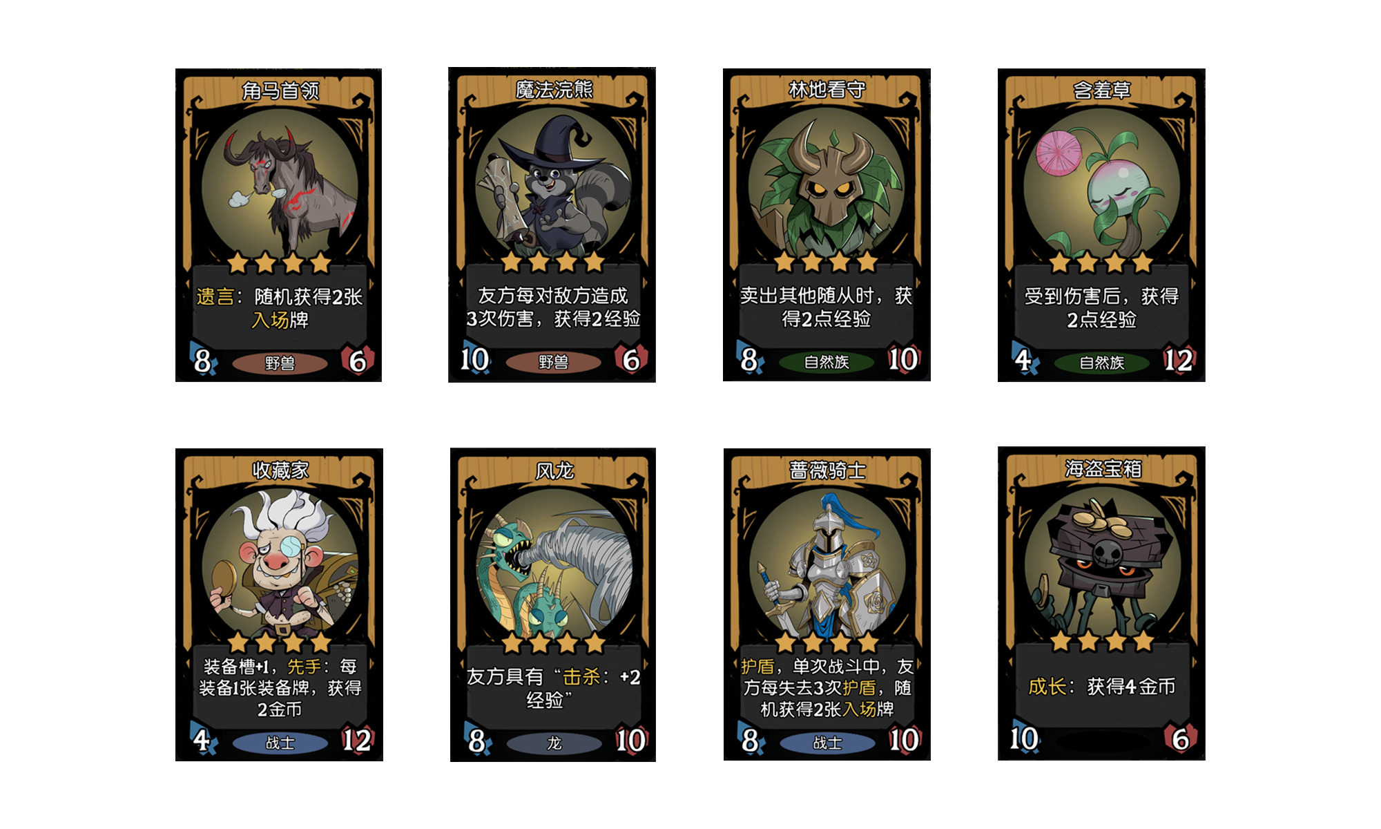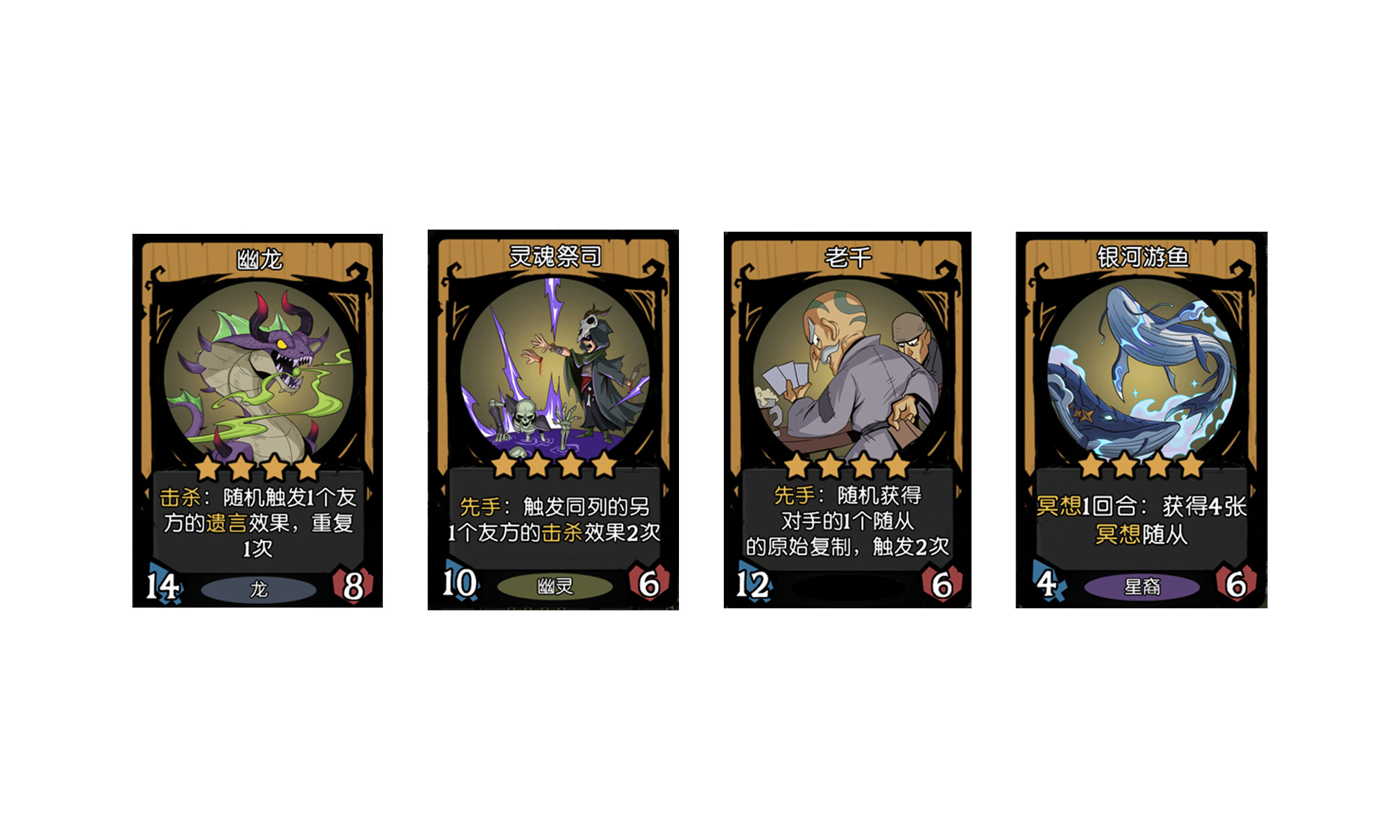 那这边第一张一本的金色随从,推荐是拿战力牌去建立前期优势。用这个前期优势去触发被动,来累计敌方的阵亡数量。