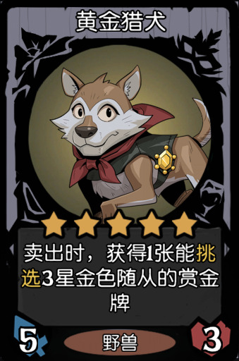 那这边黄金猎人的舞伴则是 黄金猎犬:五星,卖出时,获得一张能挑选三星金色随从的赏金牌。