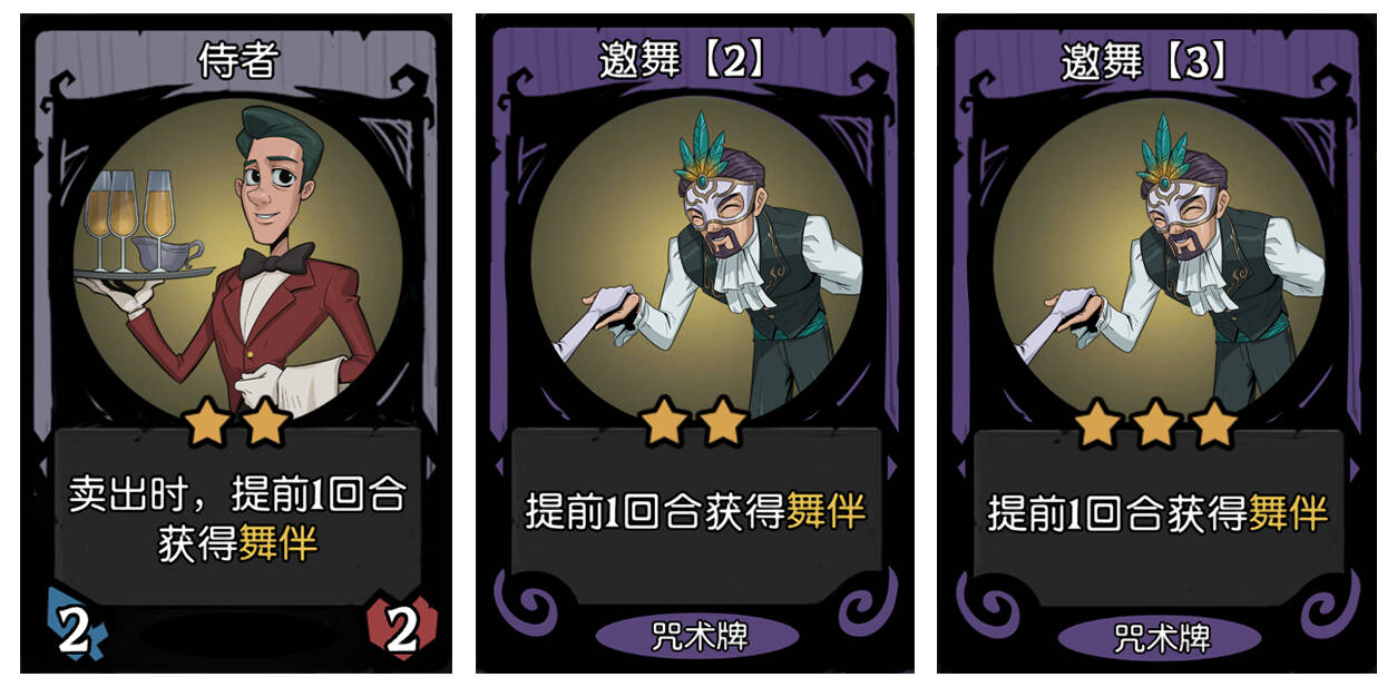 那这边前期能加速去获得舞伴的卡有二本的侍者,还有二本和三本的两张咒术。